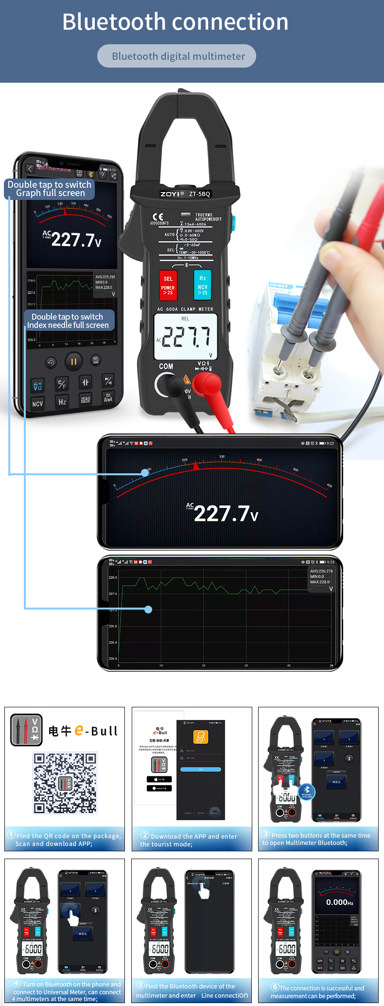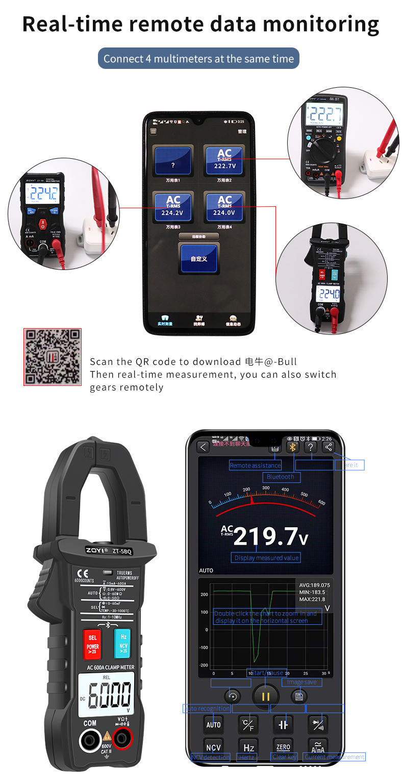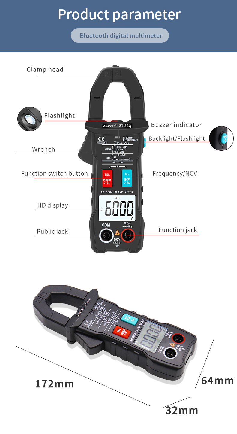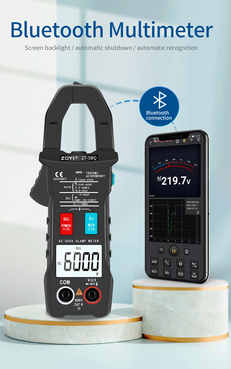 ZOYI ZT-5BQ AC 600A Clamp Meter 6000 Counts Bluetooth Multimeter Voltmeter Ammeter Standard Version