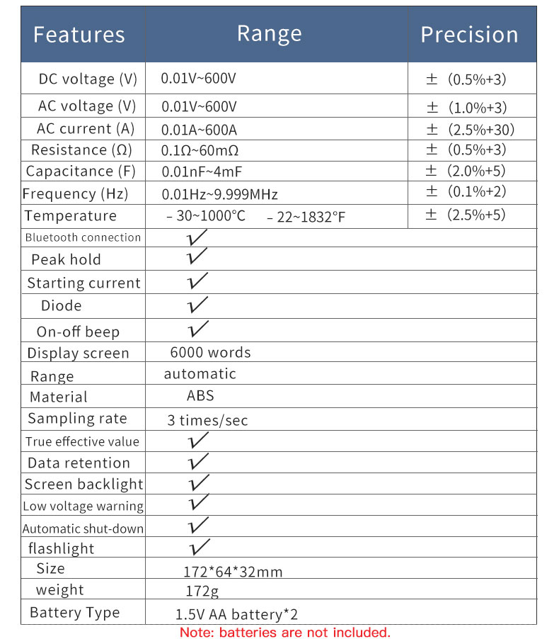 - AC 600A True RMS Clamp Meter:The clamp meter measures AC current up to 600A without opening the wire's cover; TRMS measurements are more accurate than other methods when measuring both sinusoidal and non-sinusoidal ac waveforms.
