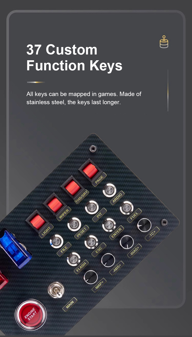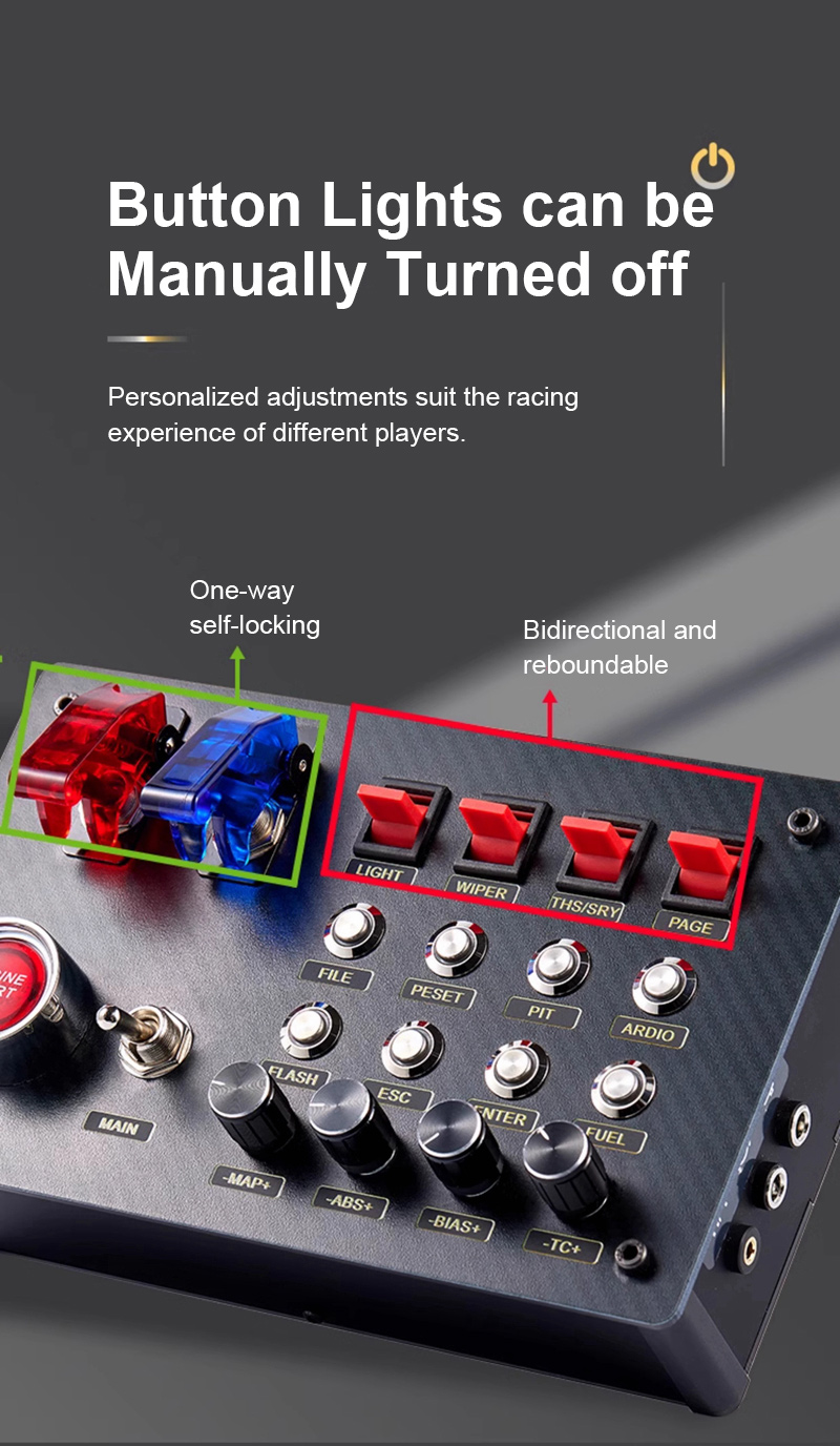 - Button lights can be manually turned off. Personalized adjustments suit the racing experience of different players