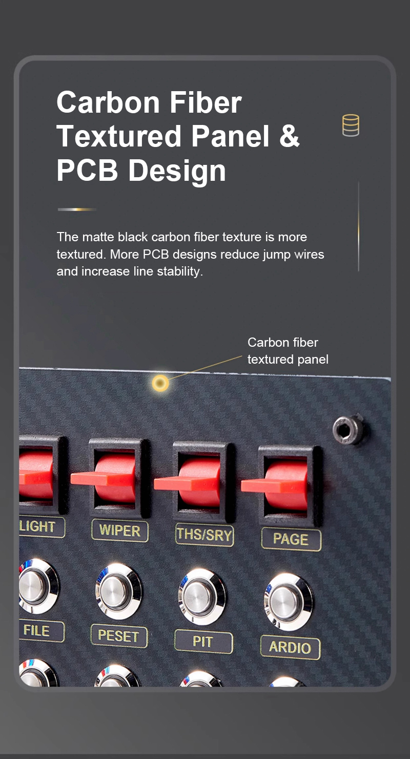 - Carbon fiber textured panel is designed with PCB. The matte black carbon fiber texture is more textured. More PCB designs reduce jump wires and increase line stability
