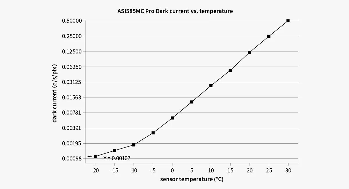 - Thanks to the two-stage TEC cooling, ASI585 Series can lower the CMOS sensor temperature to more than 35 degrees Celsius below ambient temperature, which can greatly reduce dark current generation and sensor noise even during extended exposure times.