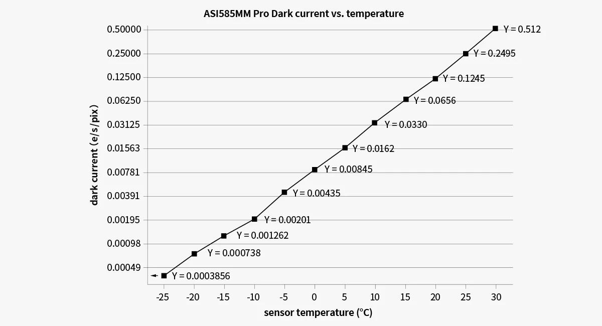 - Below is the dark current curve of ASI585 Series at the temperature from -20℃ to 30℃.