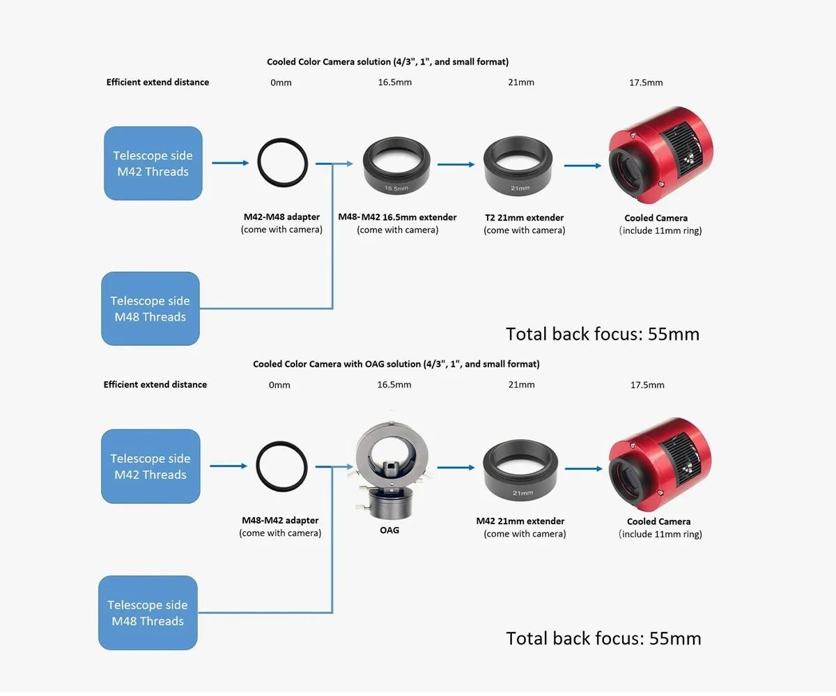 - USB 2.0 HUB: Can be used to connect various kinds of USB devices such as EFW, guide camera, and EAF.