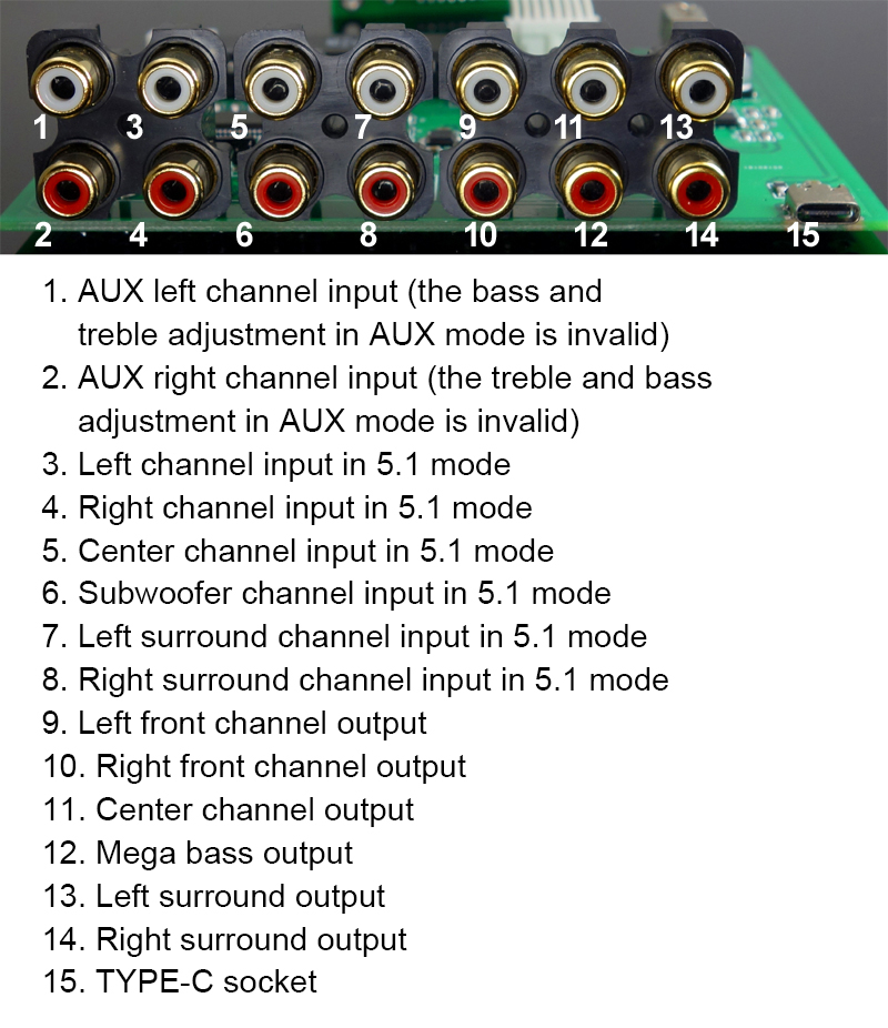 5. To output 5.1 channels, there must be a 5.1 signal input, and if you input 2 channels, the output is also 2 channels