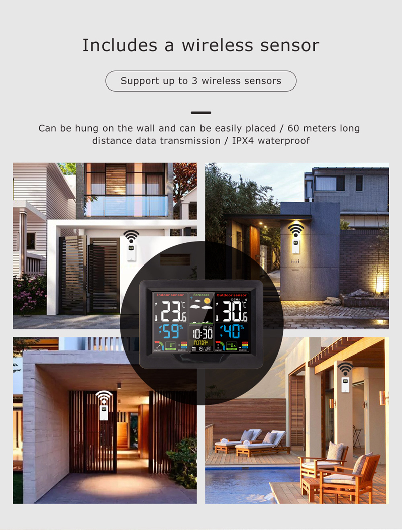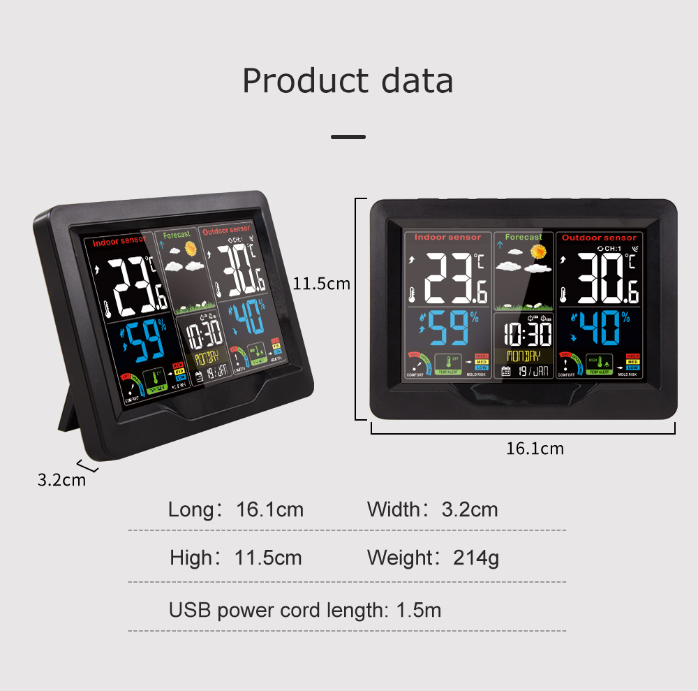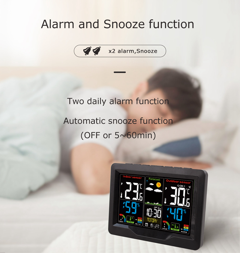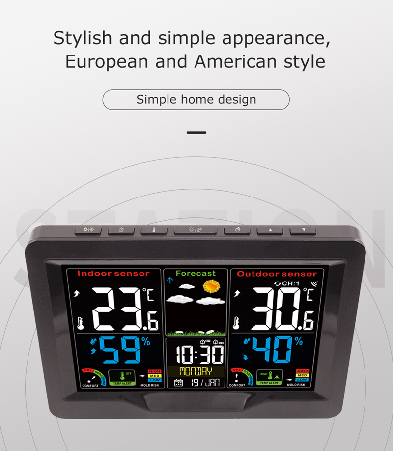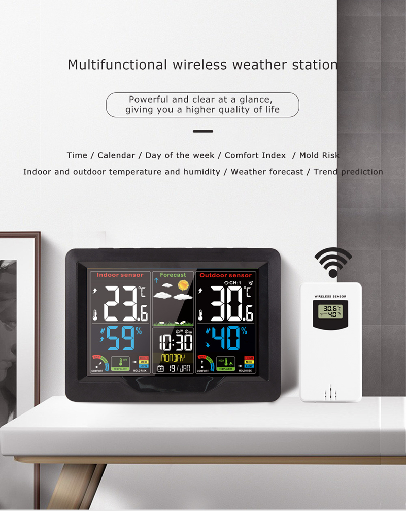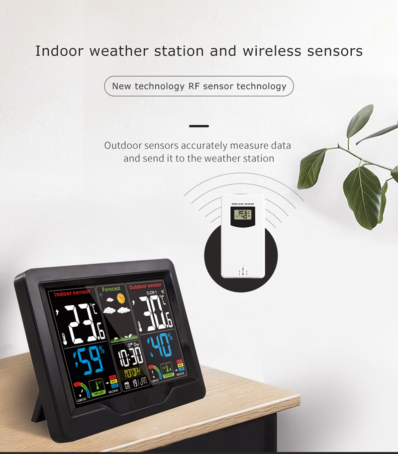 FanJu 3383C Weather Clock Color Screen Weather Station Wireless Sensor For Indoor Comfort Detection