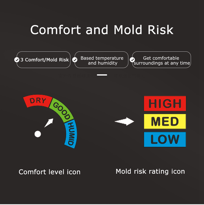 • Indoor humidity display range: 20%RH to 95%RH, display resolution: 1%RH