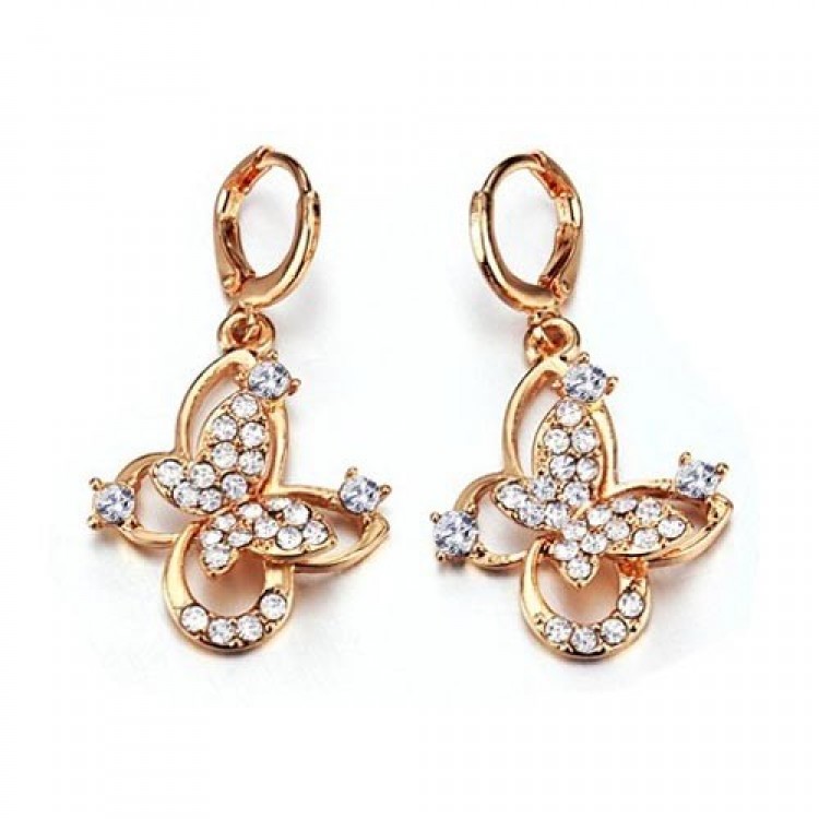 Fashion Rhinestone Decor 18K Gold Plate Butterfly Earring