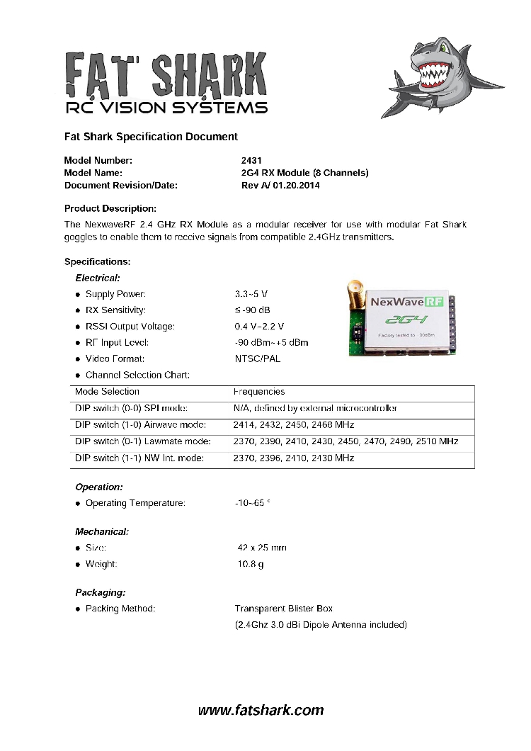 Fatshark 3.3V-5V 2.4GHz 8 Channel NexwaveRF Receiver Rx Module for RC Multicopter FPV