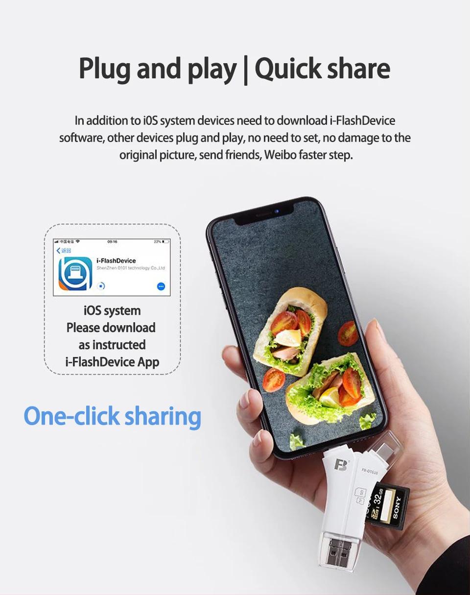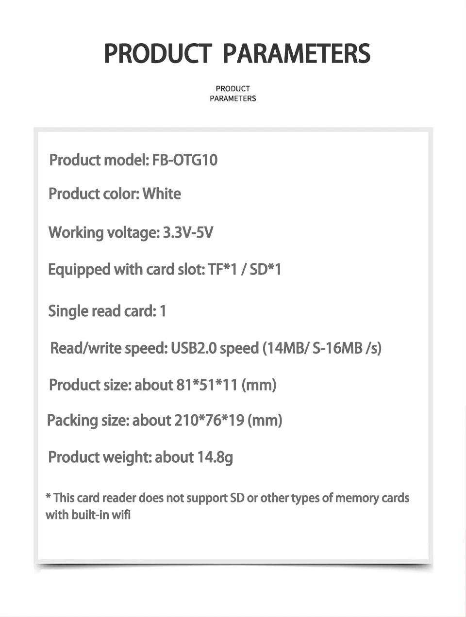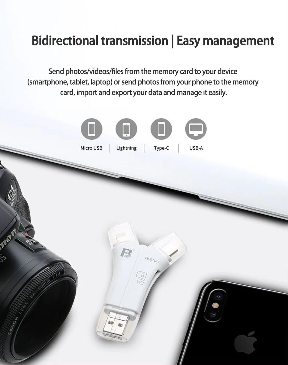 FB-OTG10 Multifunctional TF/SD Card Reader Bidirectional Transmission for DSLR Camera Memory Cards