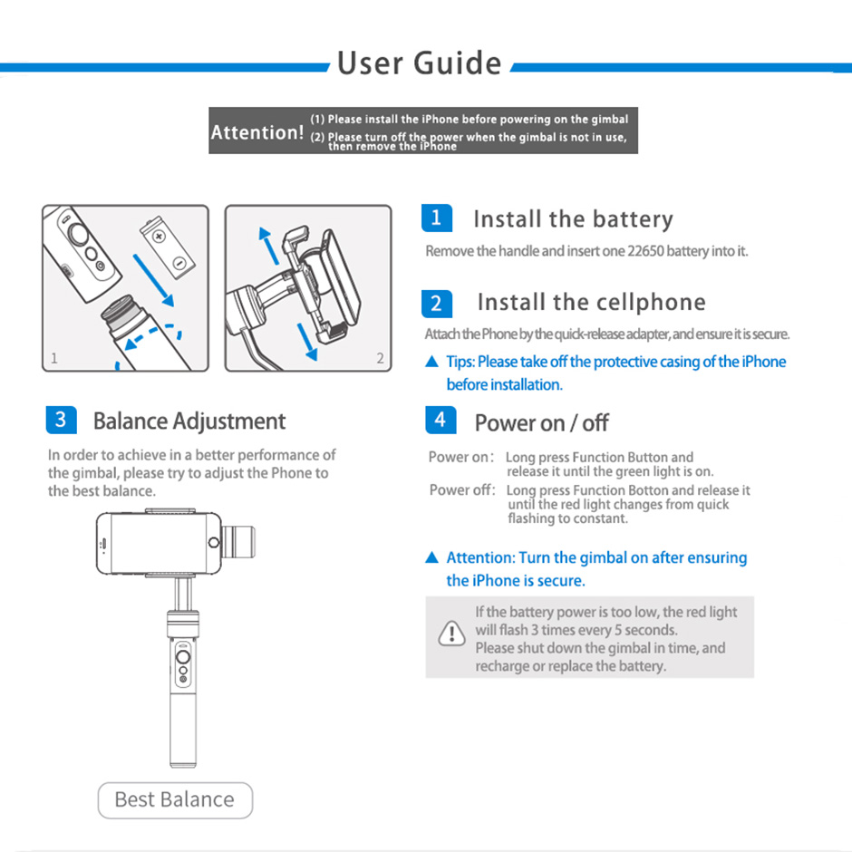 Feiyu SPG 3 Axis Brushless Handheld Gimbal Stabilizer Bluetooth for Smartphone Action Camera