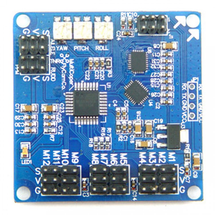 - Motor or Servo Output: 12 channels (Support for Butterfly, Octo, X8, Y6T, TwinQuad, TwinHexa, Dodeca, ...)