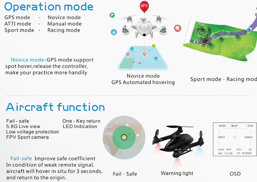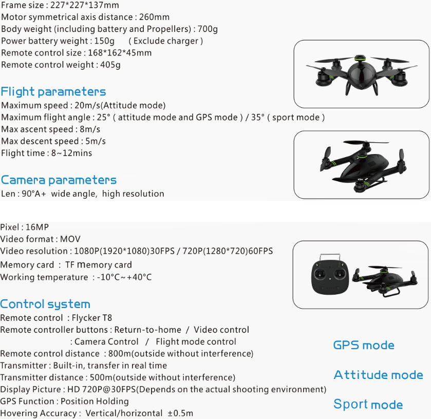 Flycker Vision-260 5.8G FPV with 16MP HD Camera GPS OSD RC Quadcopter