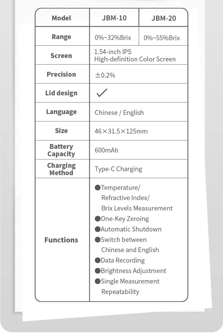 FNIRSI JBM-10 Intelligent 0%-32% Brix Refractometer High Accuracy Digital Sugar Meter with 1.54-inch IPS Screen