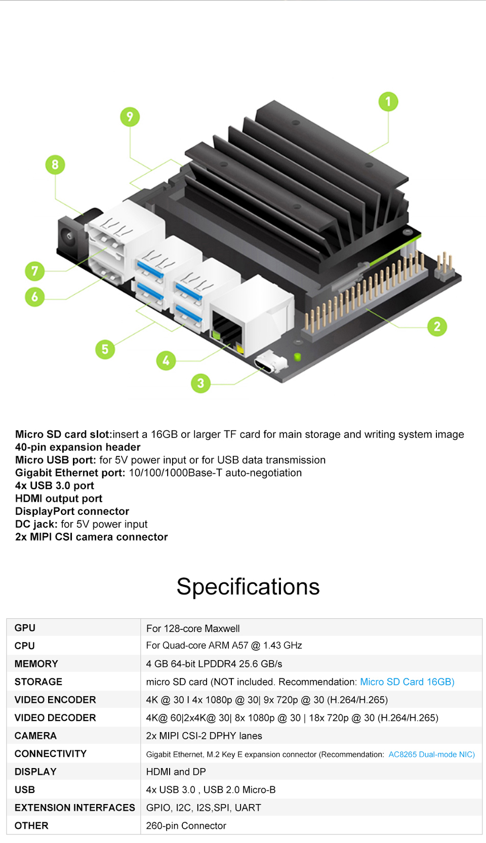 - 1 x For Jetson Nano Developer Kit B01
