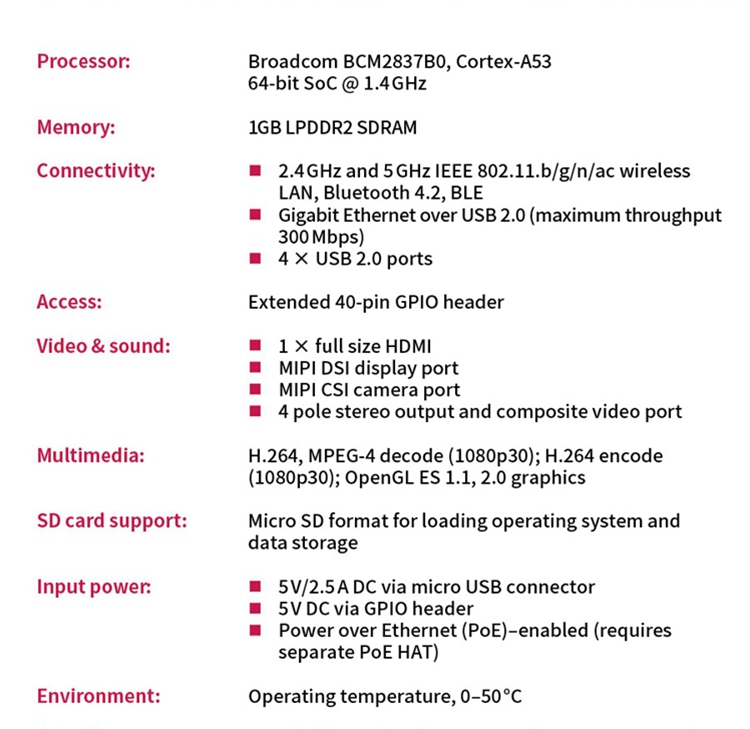 For Raspberry Pi 3B+ Board 1.4GHz Quad-Core 64-Bit Process WiFi Bluetooth & USB Port Only Board