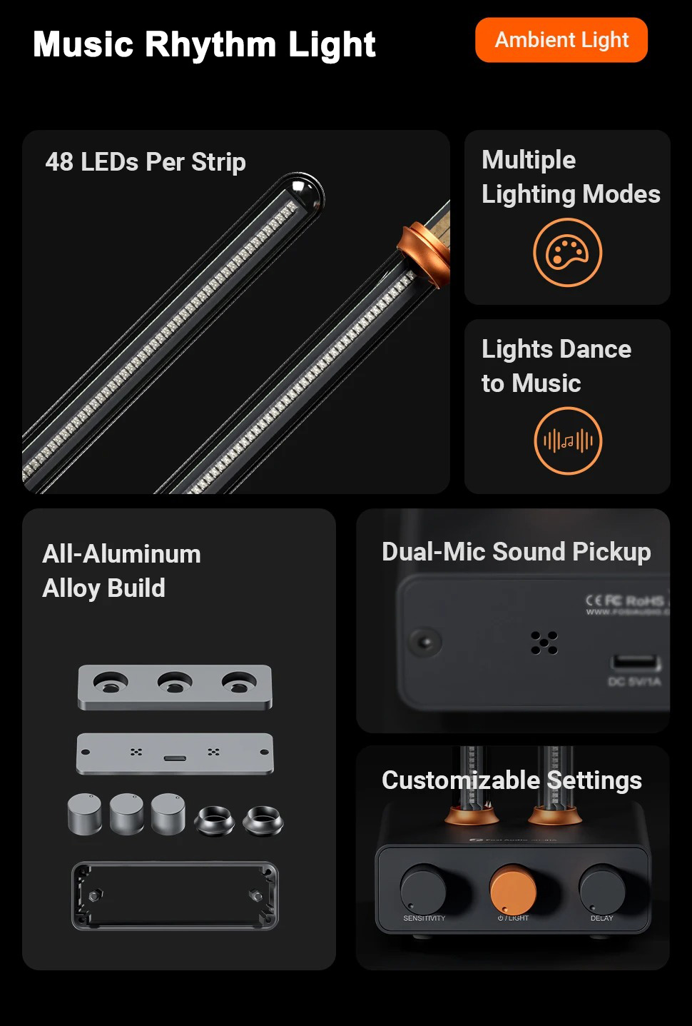 Fosi Audio AH-01A Music Visualizer RGB Music Rhythm Light Ambient Light with Two Transparent Tubes