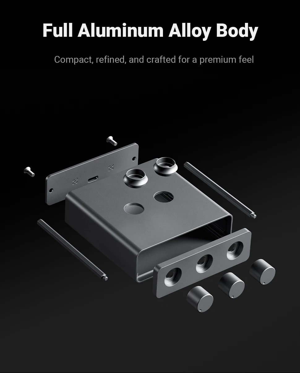 * AH-01A's exterior is crafted from full aluminum alloy using precise CNC machining. This not only gives it a high-end, premium feel but also results in a compact size. The anodizing process enhances its appearance by providing a warm, smooth texture to the touch. Durable and wear-resistant, AH-01A withstands long-term use while maintaining an elegant look, making it a high-quality decorative item for your home or office.