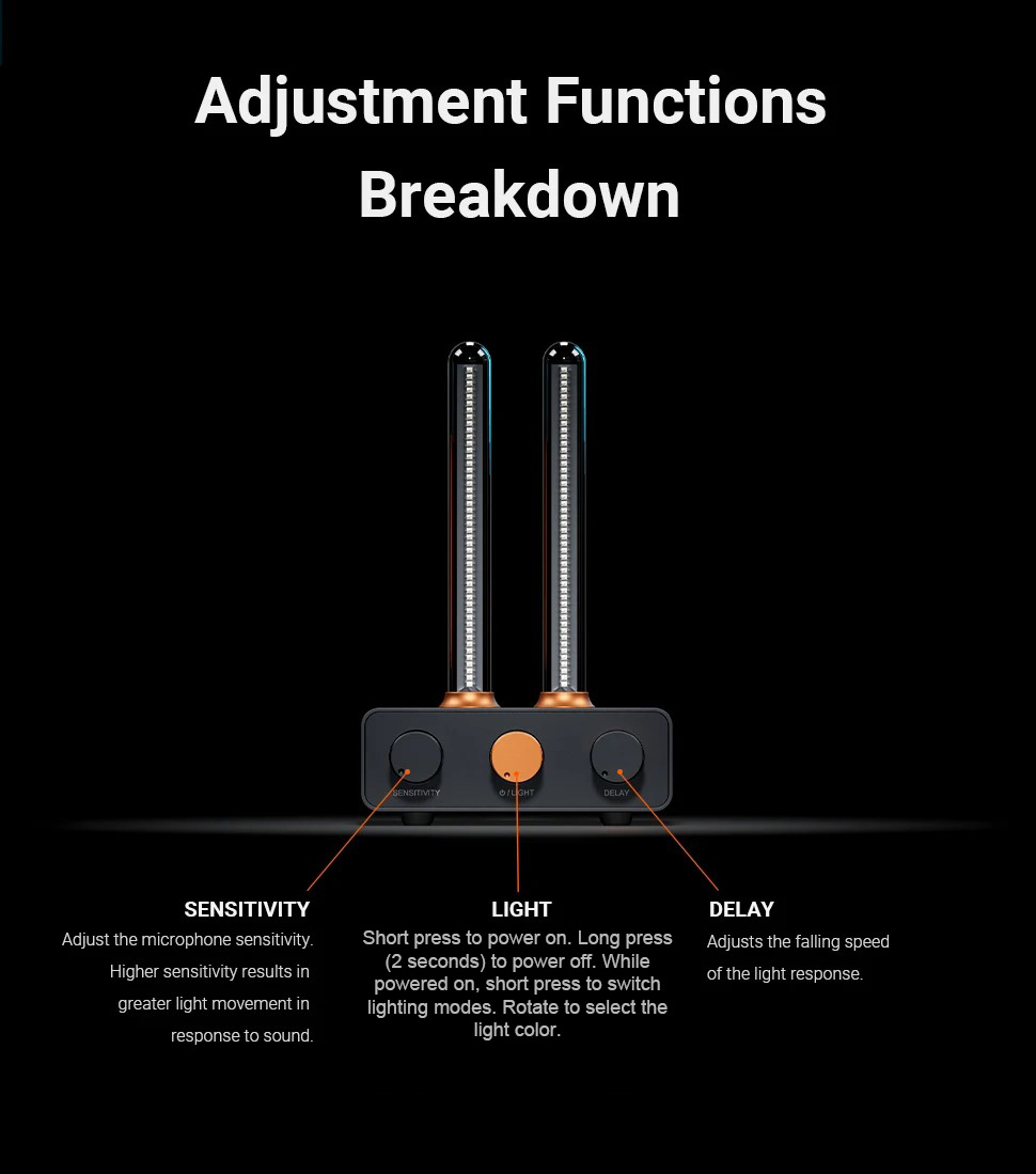 * The lamp features adjustable sensitivity, allowing you to customize how responsive it is to music rhythms. Whether you're listening to fast-paced rock or gentle classical pieces, you can fine-tune the sensitivity to match the tempo. This ensures the lighting accurately responds to your music, providing a personalized experience tailored to your preferences.
