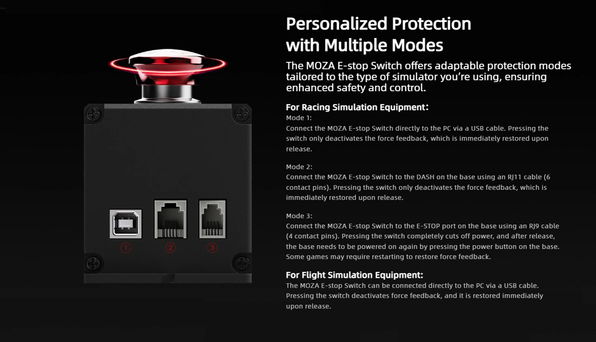 * Compatible with MOZA simulators, it offers multiple protection modes for safety and control.