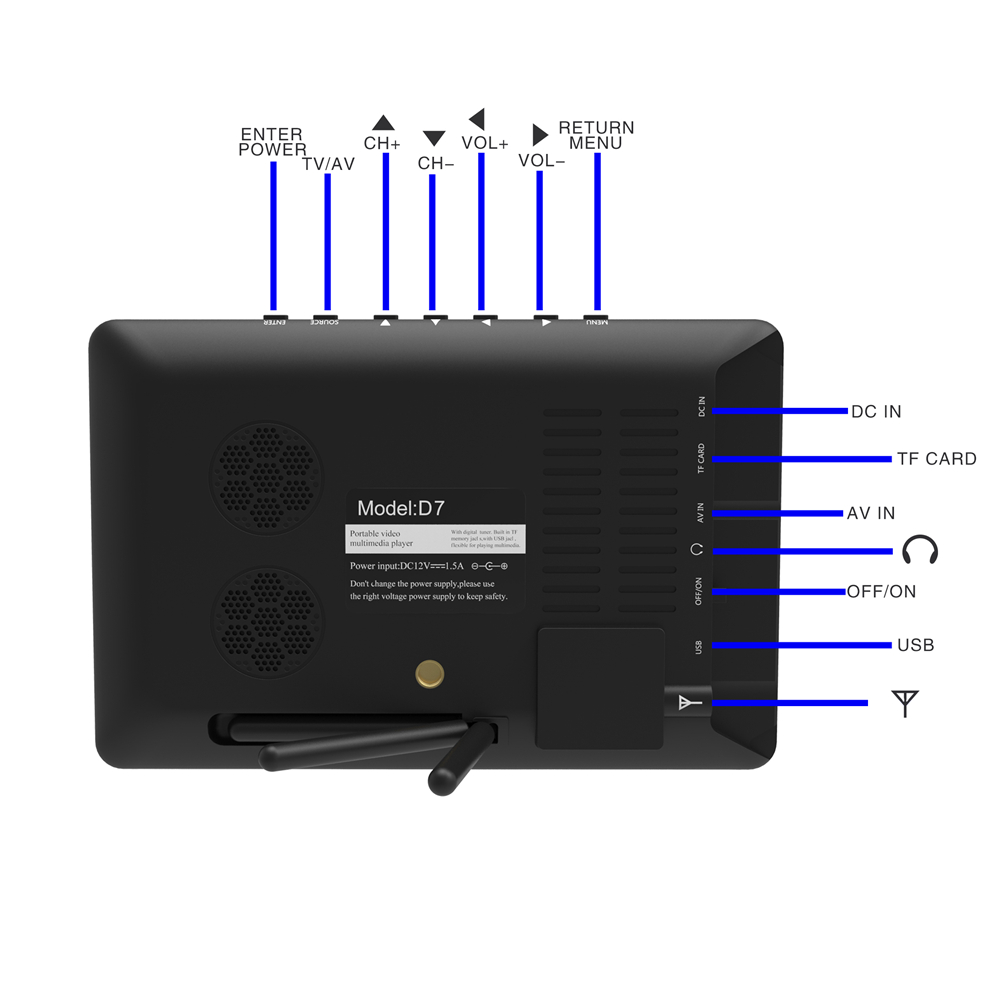 LEADSTAR D7 7-Inch HD FM Portable Digital TV Portable Television ATSC DVB-T2 ISDB-T Car Small TV