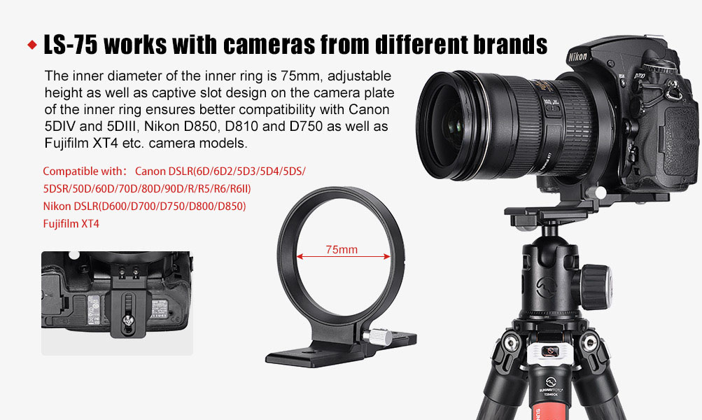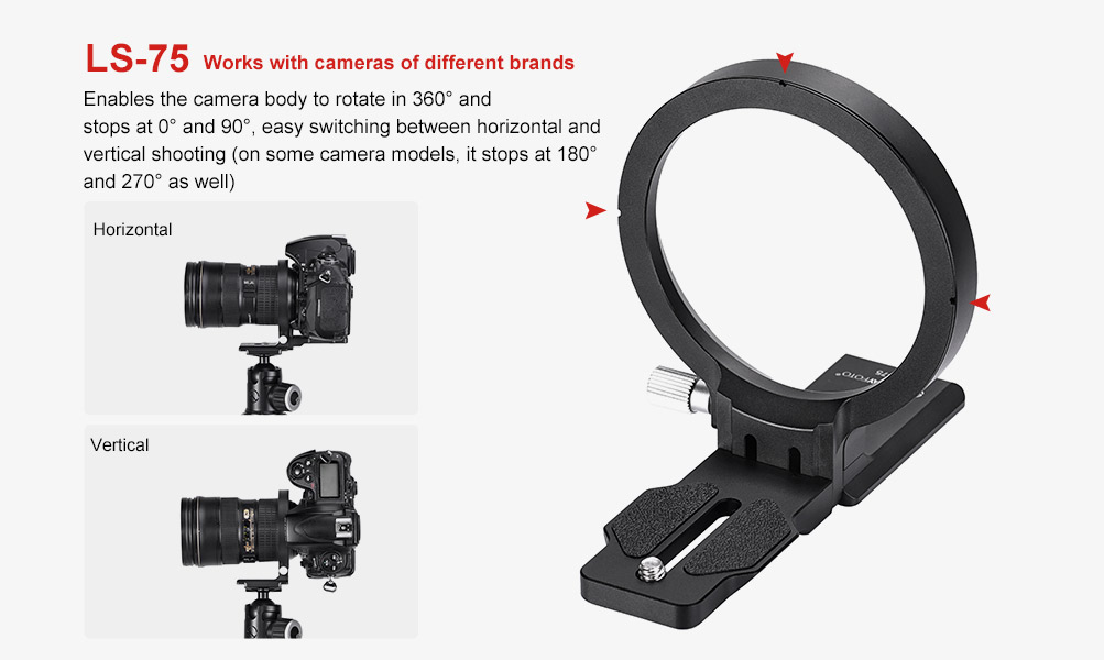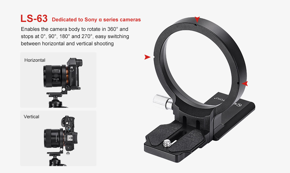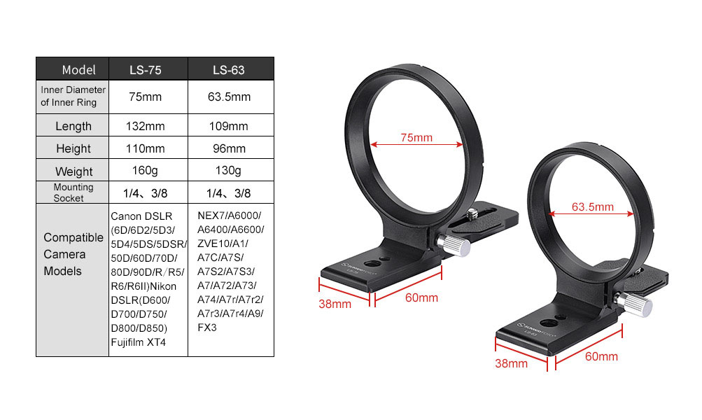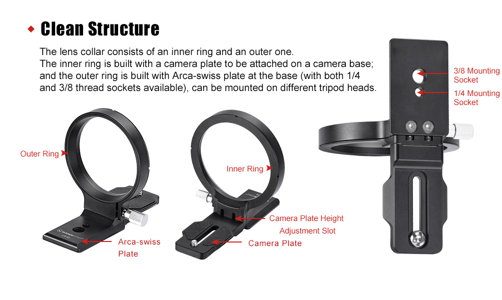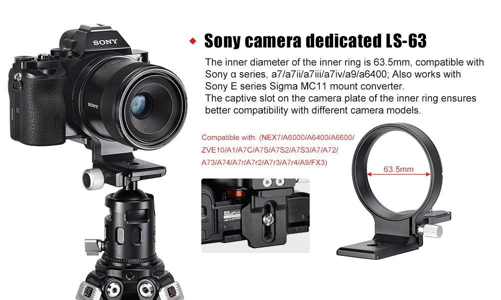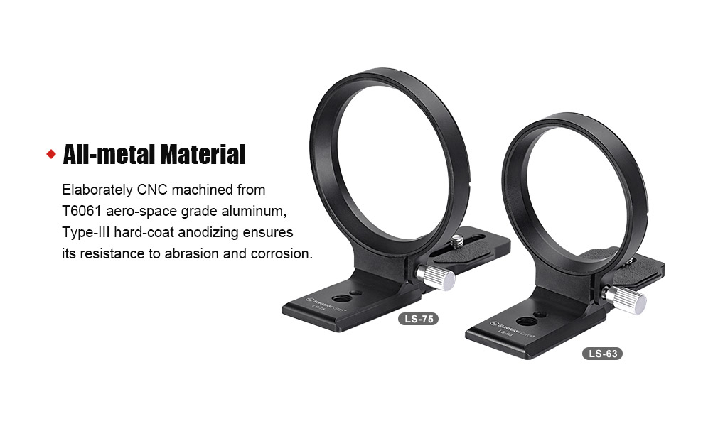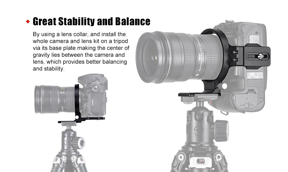 LS-63 Metal Lens Collar Great Stability and Balance Ring Lens Support with Arca Swiss Plate Collar Mount