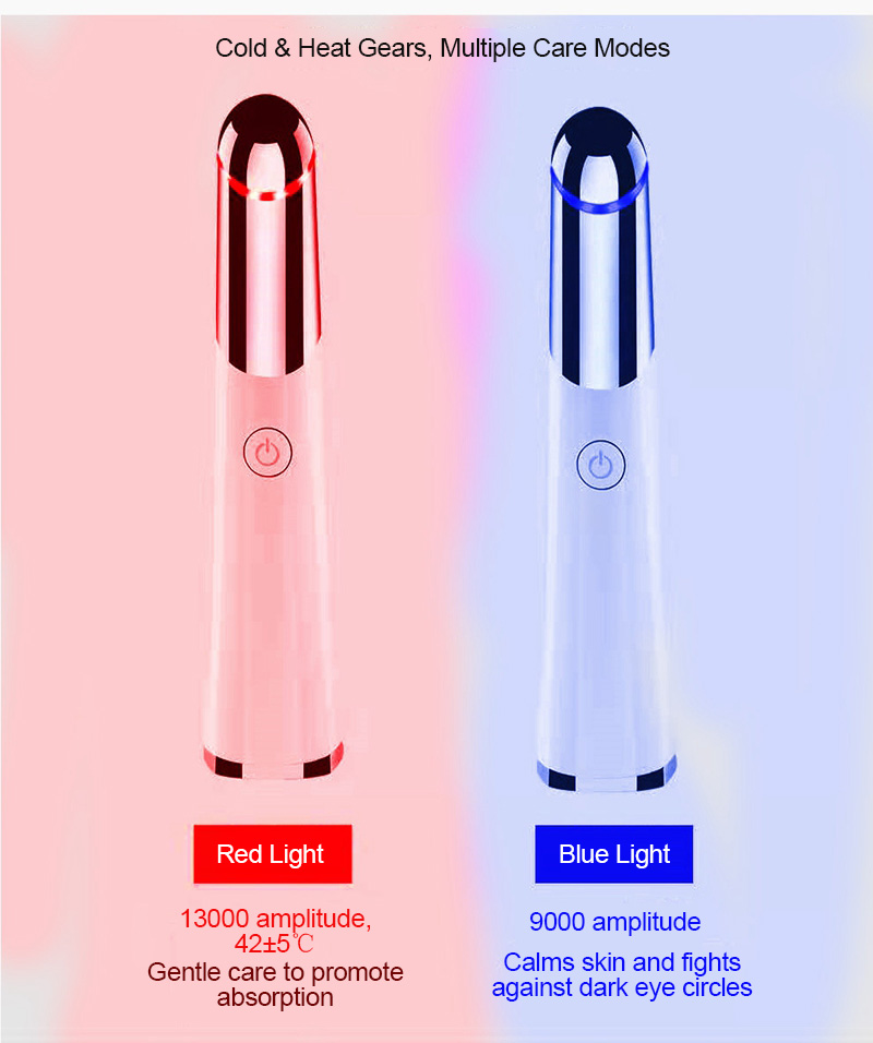 - Cool and heat regulation, multiple care modes. Red Light Mode: 13000 amplitude, 42±5℃/107.6±41℉, gentle care, promote absorption. Blue Light Mode: 9000 amplitude, calms skin and fights against dark eye circles. It is recommended to use with eye cream for better effect.