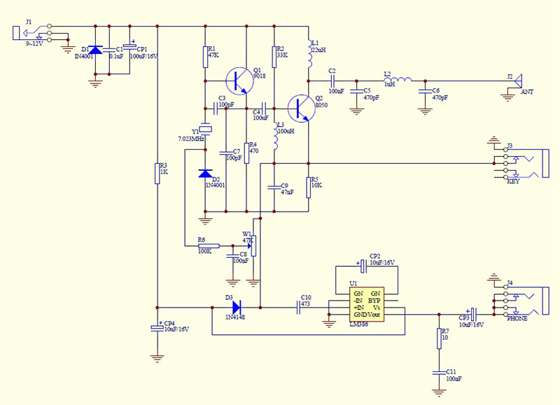 - Frequency knob adjusts frequency in the range of 7023KHz to 7026KHz, receiving CW and SSB signals