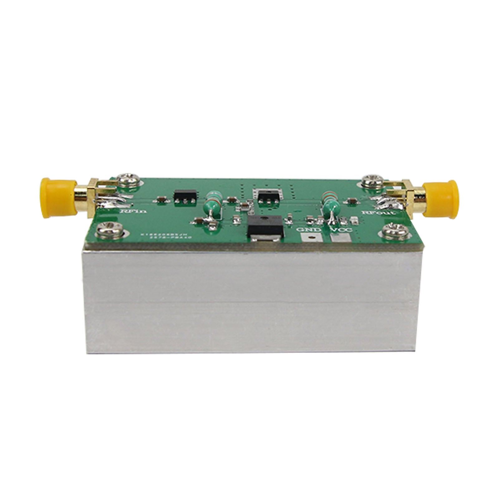 This wideband RF low-power amplifier is suitable for various types of radio transmission, such as shortwave FM wireless remote control, FM radio transmission, amateur radio 135-175MHz, and 380-470MHz walkie-talkie. When the low frequency input is 1mW, it can output a maximum of 1.6W. When inputting 512MHz, it can output a maximum of 1.0W. Equipped with heat sink, it can work stably for a long time.