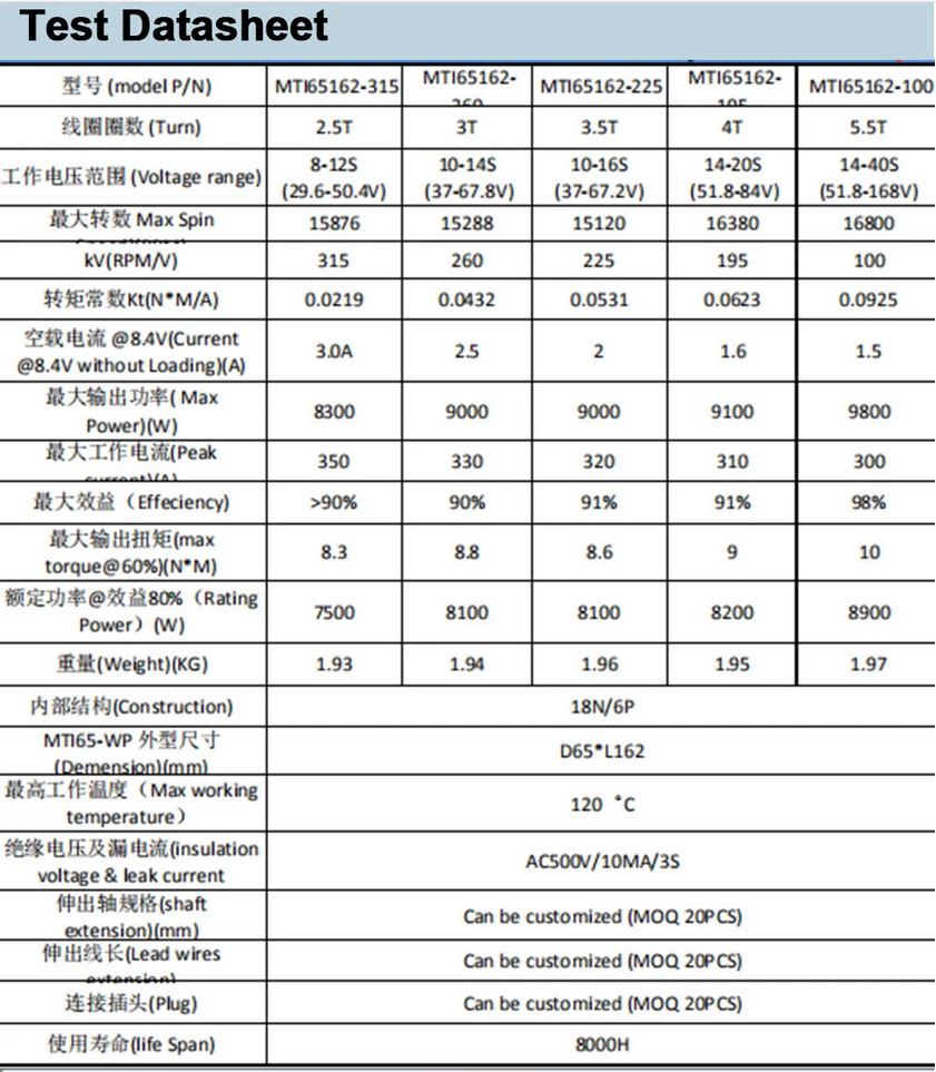 - Motor Size: 65 x 162 mm (Dia.*L)