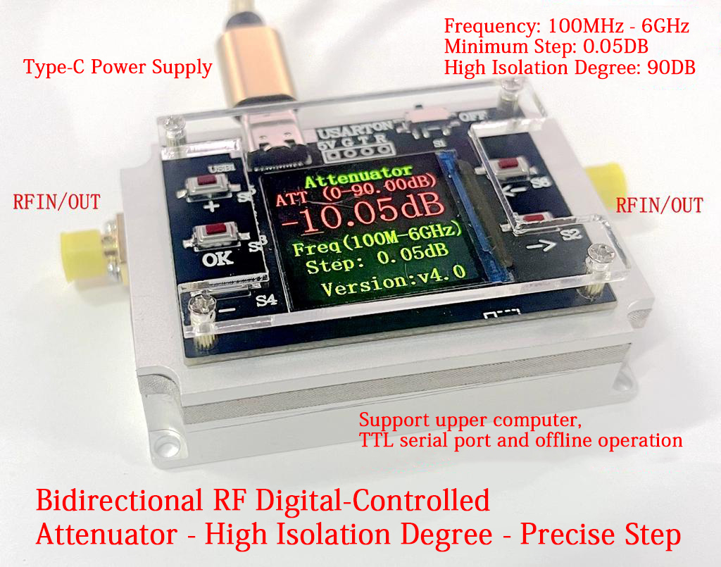 100MHz-6GHz High Quality RF Attenuator Module 90DB High Isolation 0.05DB Attenuation Step with SMA Female Connector