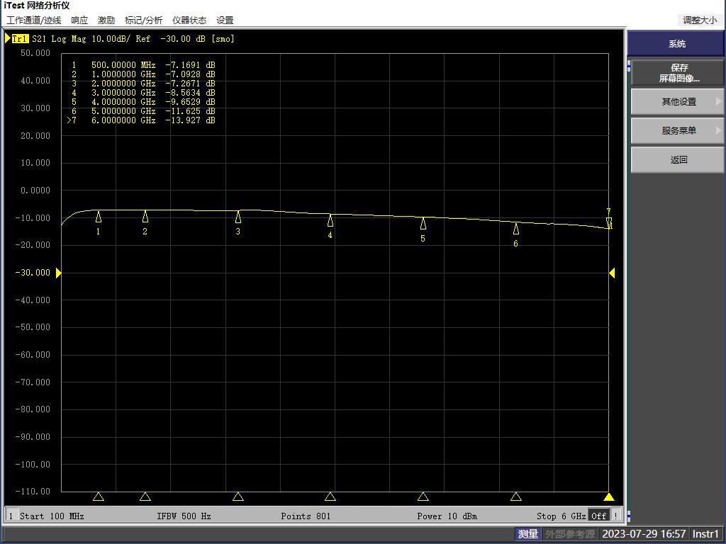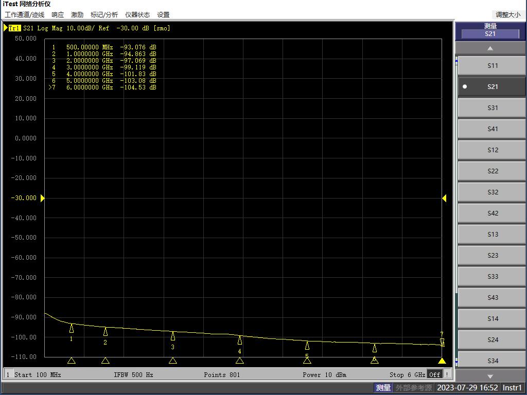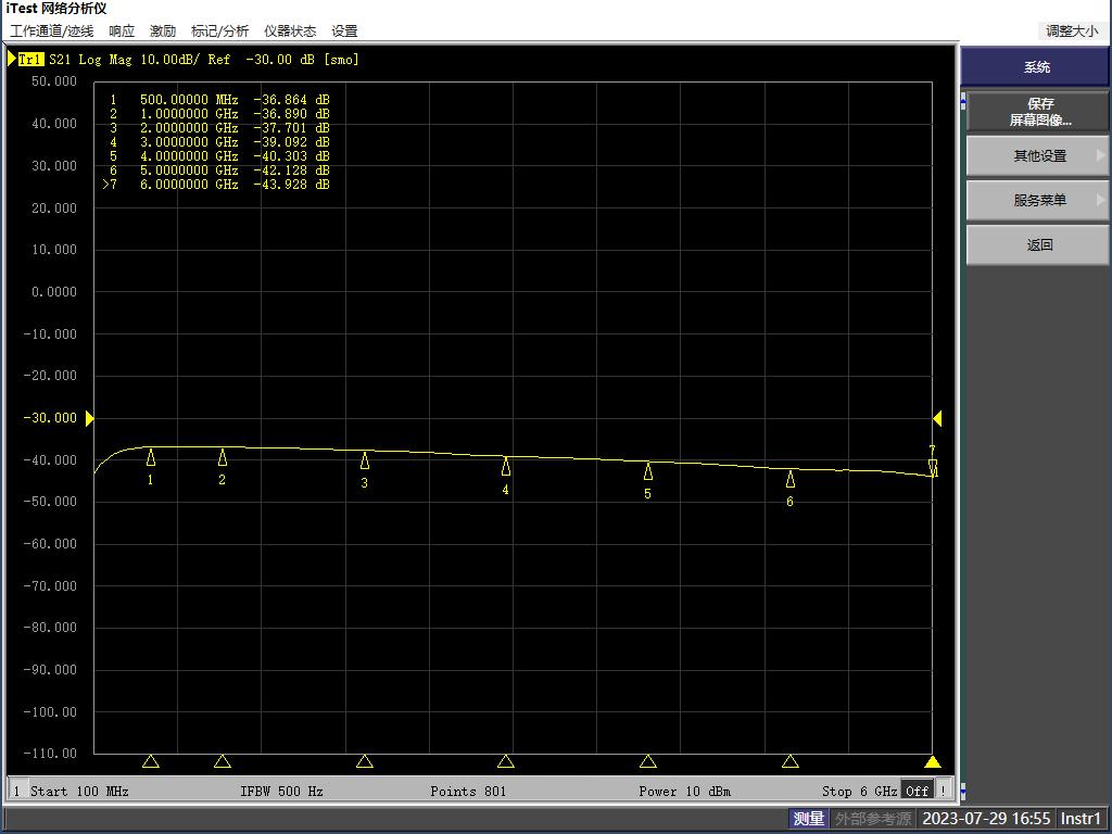 - When setting the attenuation amount to 0DB, measure the S21 parameter (insertion loss)
