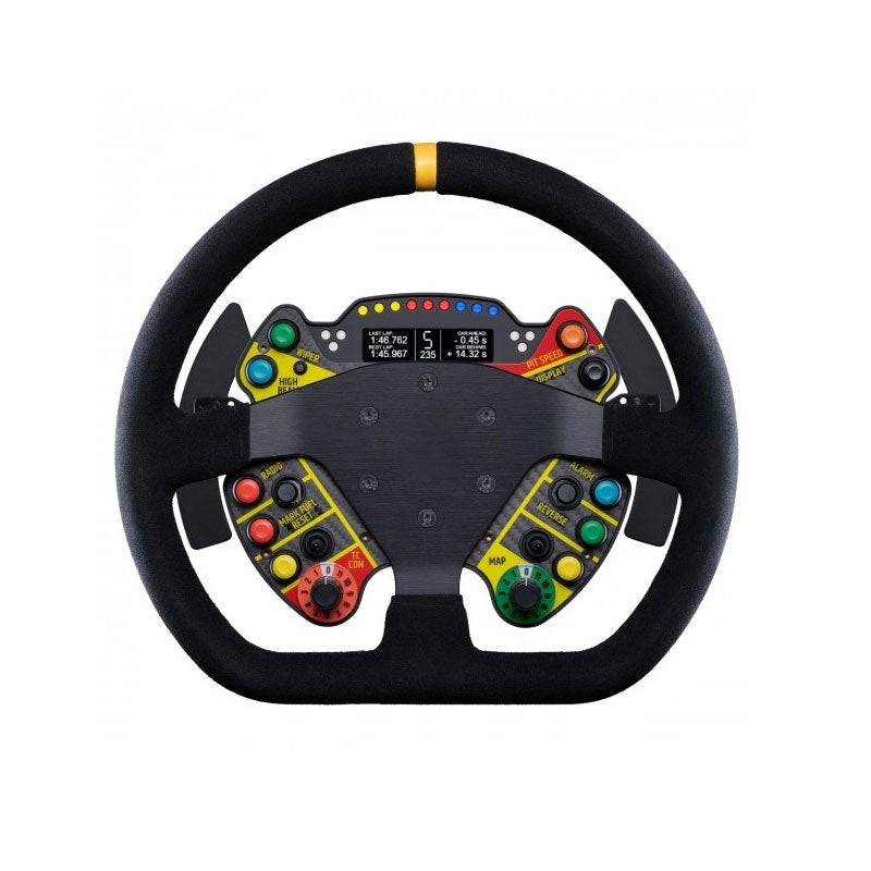The customisable OLED display offers enhanced display capabilities through Intelligent Telemetry Mode (ITM). RGB LEDs and multiple input types are arranged neatly within the wheel rim, with instant access to force feedback adjustments using the Tuning Menu button.