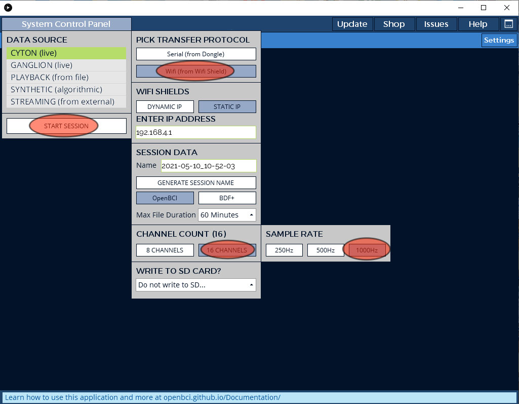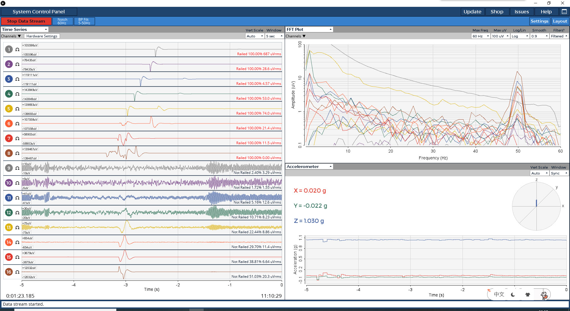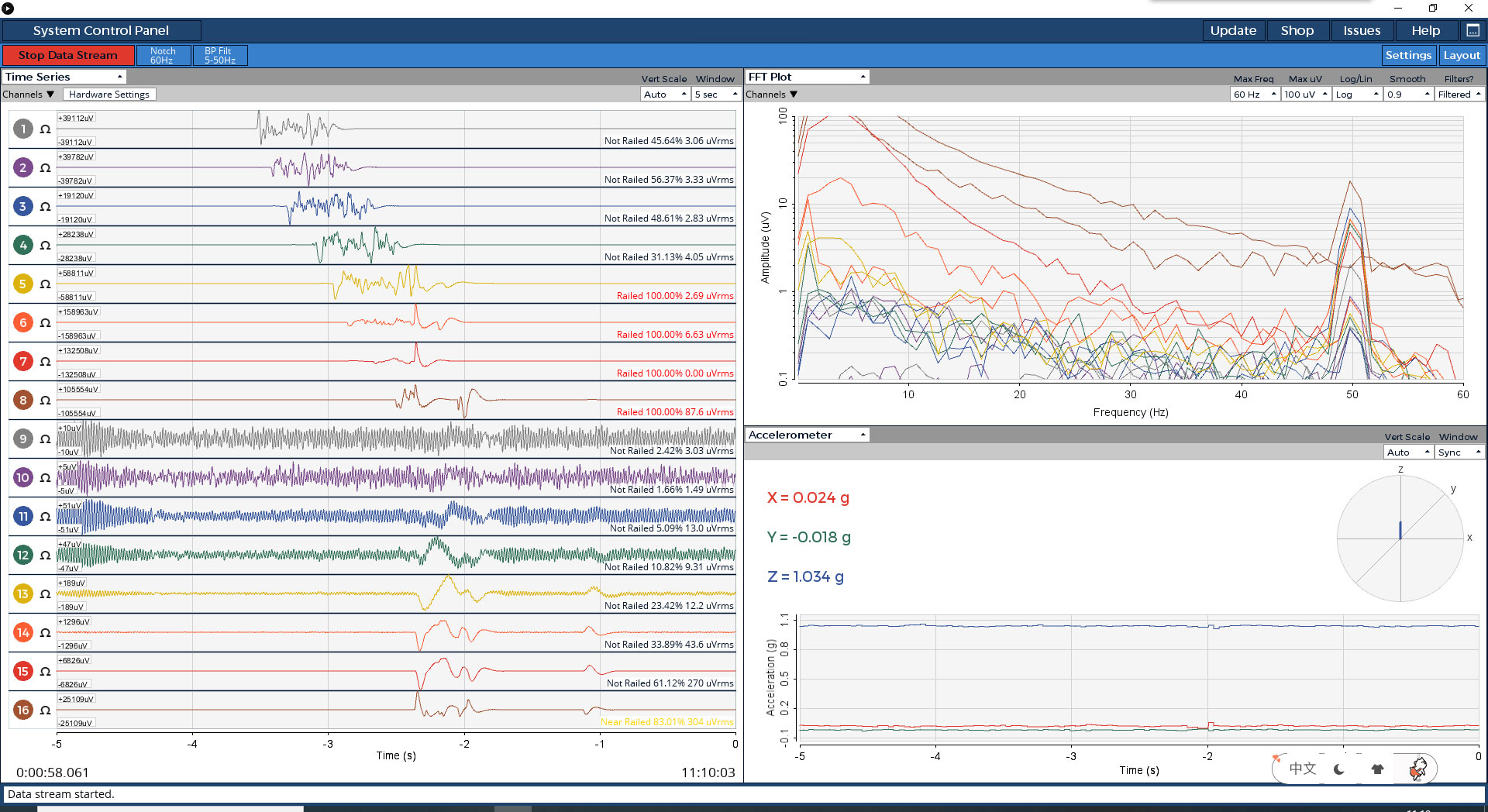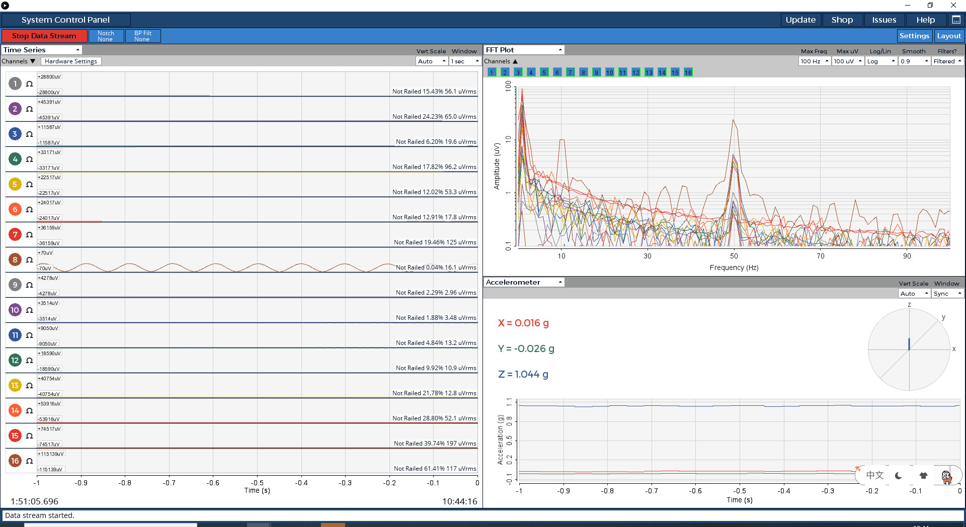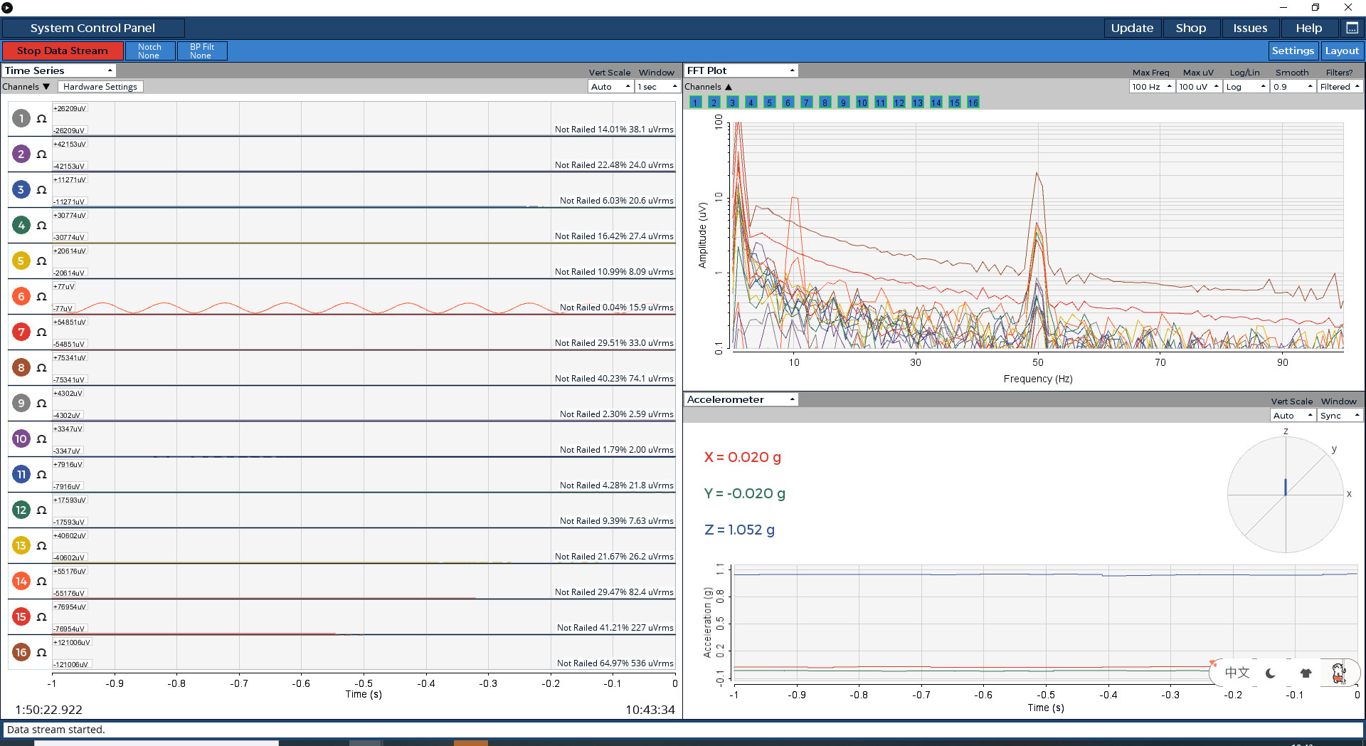 When the 16-channel acquisition board is connected, select WiFi, 16-channel, and 1K sampling rate