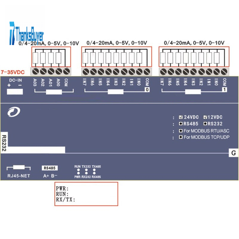 16AI + 4AO Data Acquisition For Modbus TCP Modbus RTU IO Module TCP-508J [Ethernet + RS485 + RS232]