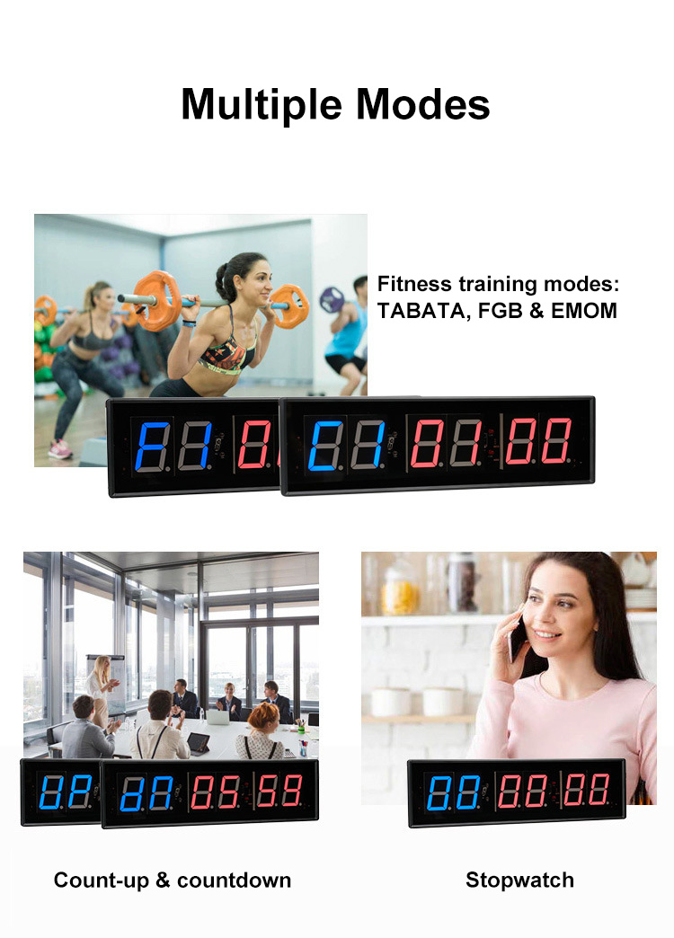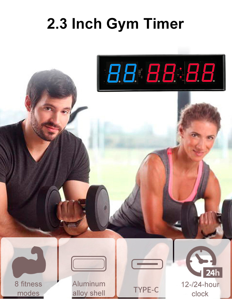 2.3" 6-Digit Gym Timer Clock Interval Timer with Buzzer Remote Control for Boxing Exercises Games