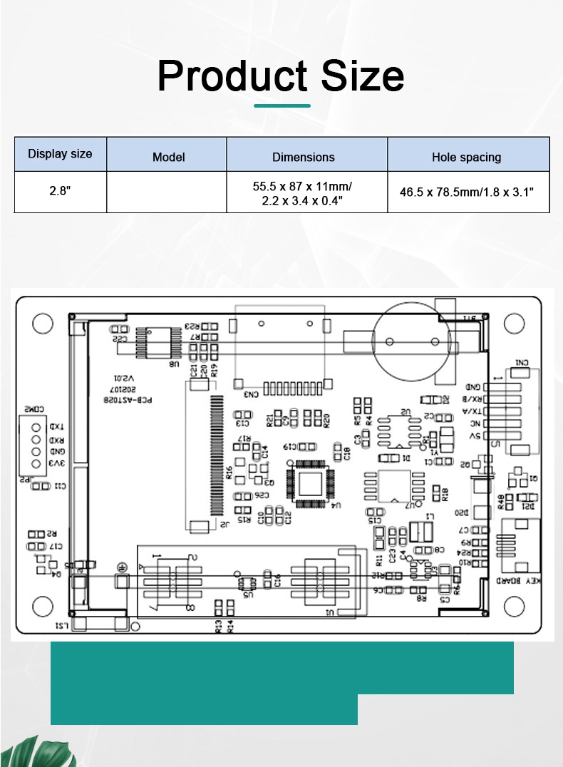 - 2.8 inch touch screen: optional communication types - TTL/RS232/RS485