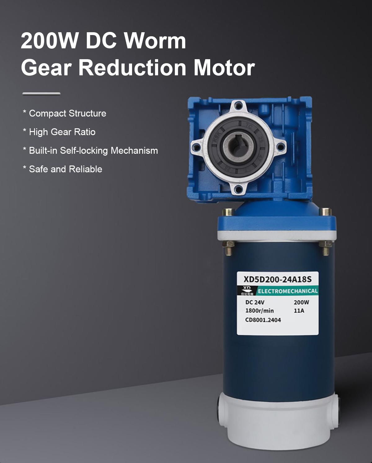 * 200W DC Worm Gear Reduction Motor