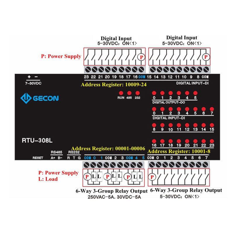 24DI 6DO Data Acquisition For Modbus RTU Industrial Controller RTU-308L 24DI + 6DO [RS485]