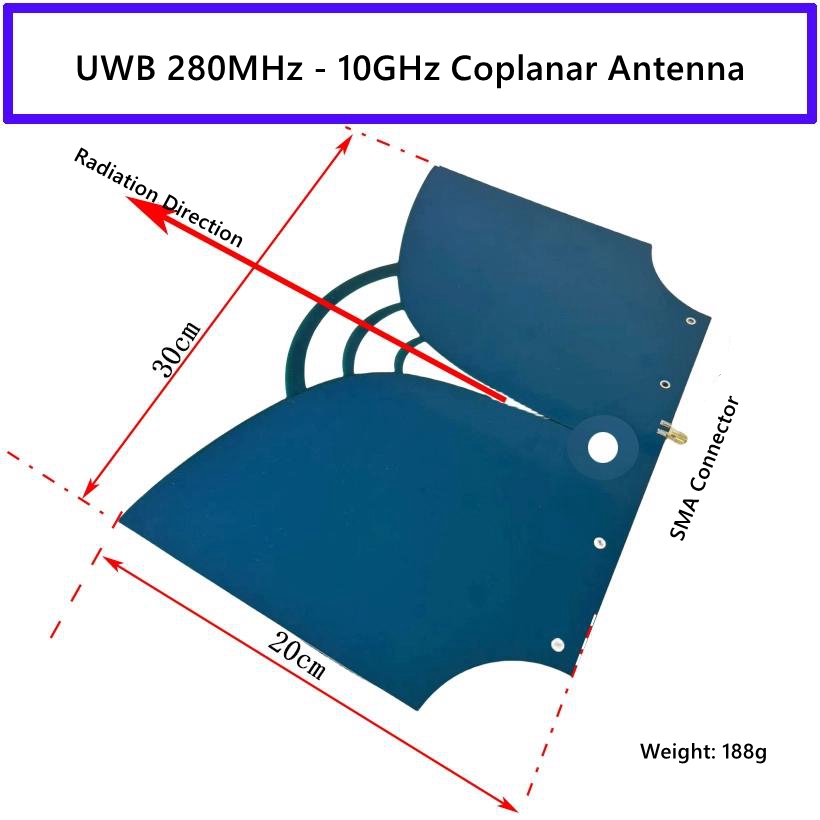 280MHz - 10GHz RF UWB Antenna Linearly Polarized Directional Antenna 50ohms Coplanar Antenna with SMA Female Connector