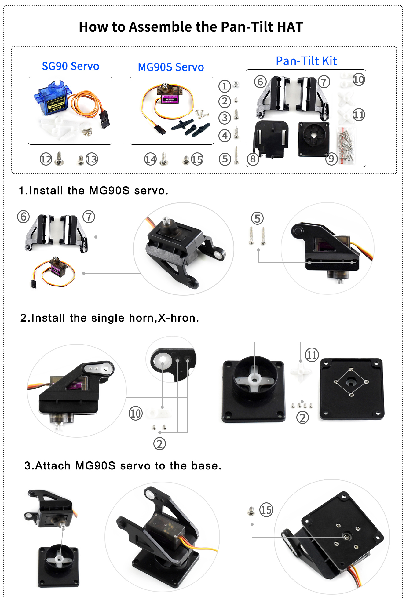 - Onboard PCA9685 chip can output 12-bit resolution PWM to control pan/tilt rotation