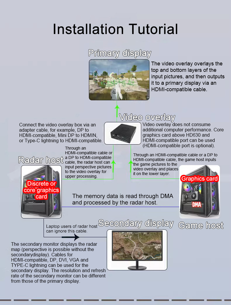 2K 144Hz/1K 240Hz CapDMA Video Overlay Box DMA Overlay w/ HDMI-Compatible Interface Low Latency