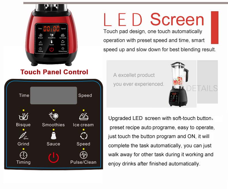 2L BPA Free Blender Mixer Juicer Food Processor 2200W 45000RPM Digital Touch Screen LED D6300 Red