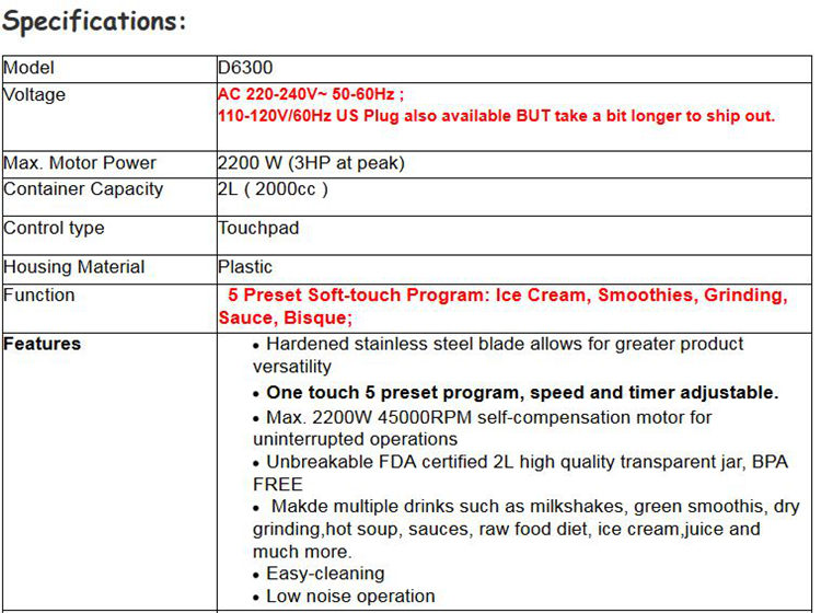 Features include timed automatic settings for 5 preset program and manual adjustable speed and timer. With its hardened stainless steel 6 wave blades for pulverizing ice and frozen fruits, along with its contemporary look, this blender could bring a new level of fun to your kitchen food preparation.