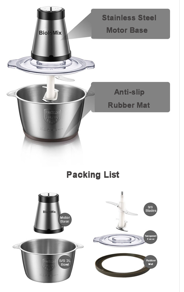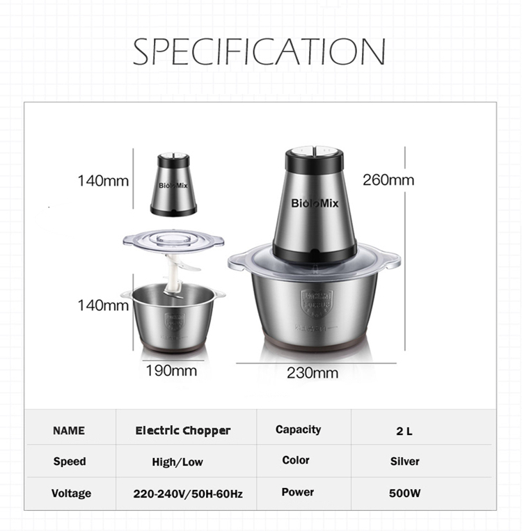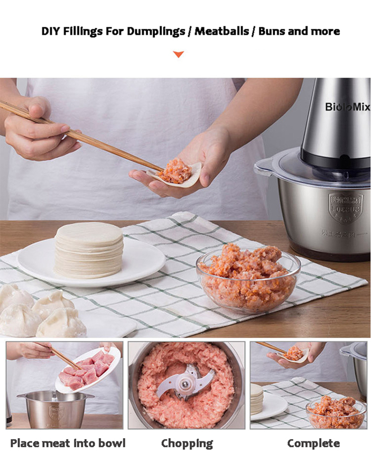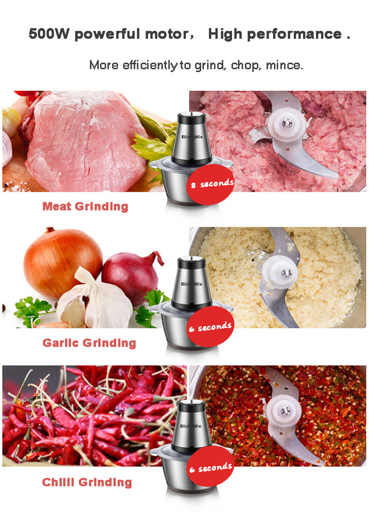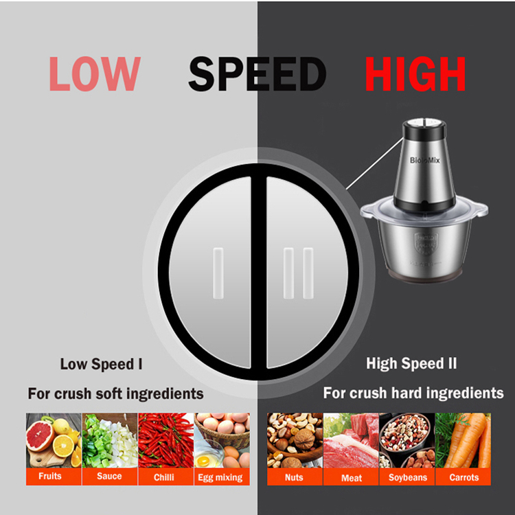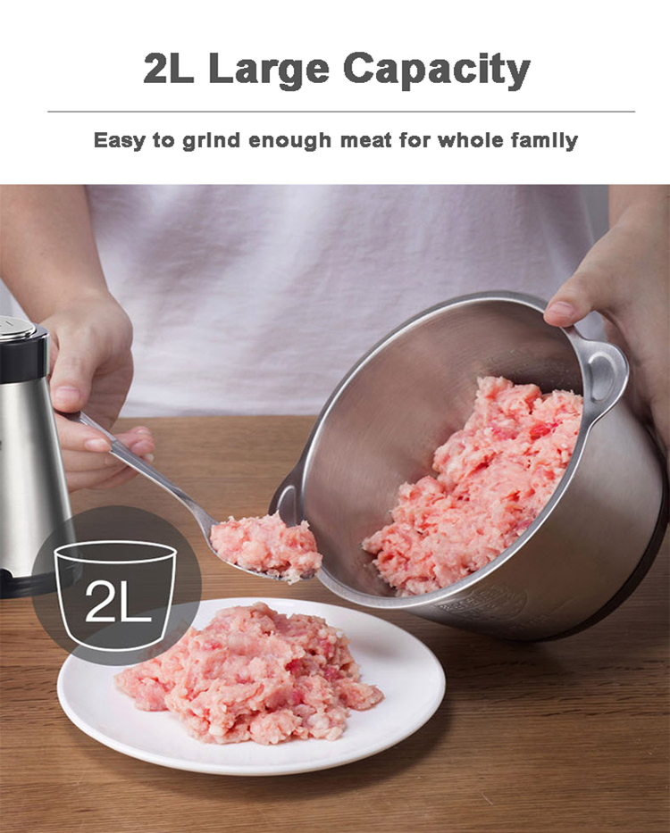2L Electric Food Chopper Meat Grinder 500W Kitchen Stainless Steel Meat Grinder