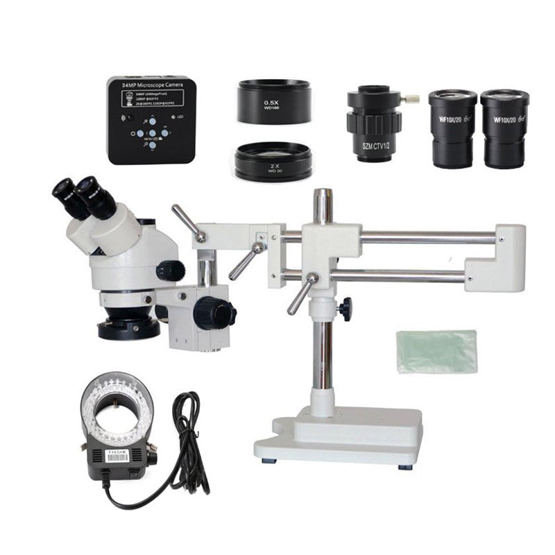 3.5X 7X 45X 90X Double Boom Stand Zoom Simul Focal Trinocular Stereo Microscope+34MP Camera Microscope For Industrial PCB Repair