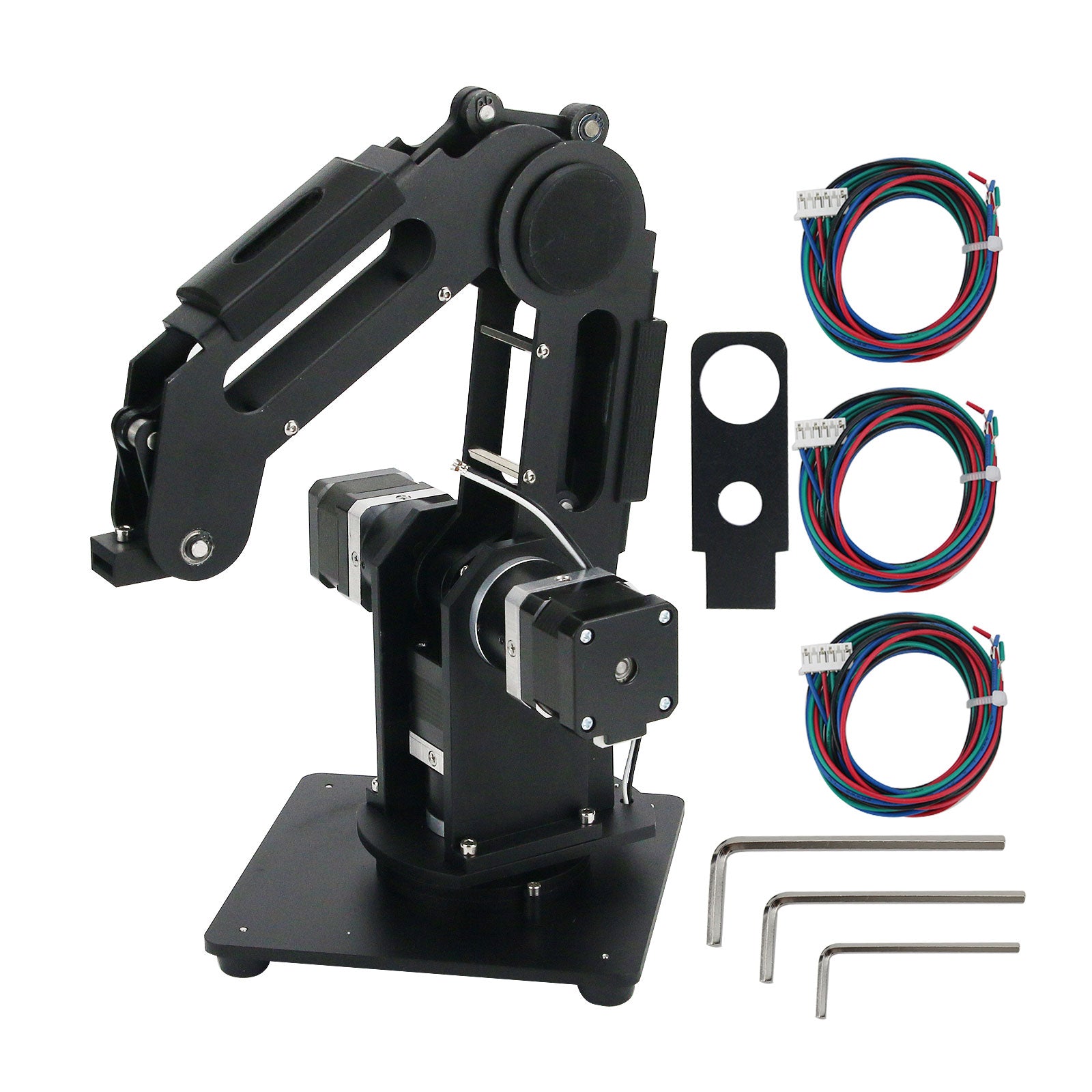3-Axis Mechanical Robot Arm 3-DOF Robotic Arm + 3pcs 42 Gear Motors Aluminum Alloy 6061 Black