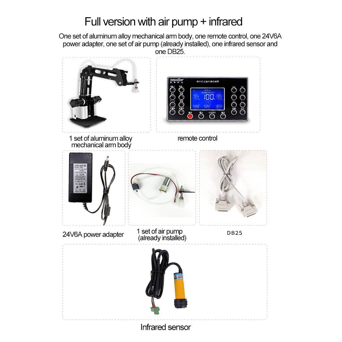 3-Axis Mechanical Robot Arm Robotic Manipulator with Air Pump Remote Control Adapter Infrared Sensor
