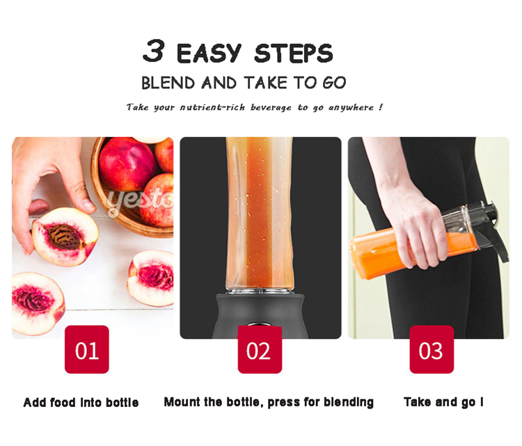 - Very convenient fruit blender, changing a lid (provided), you can bring a bottle of fruit juice with you to go anywhere.