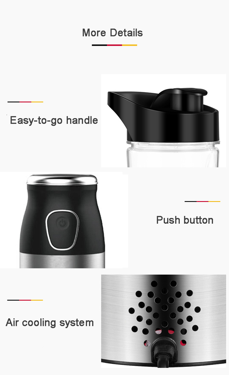 - 25000 Rotation / minute, 4 stainless steel blades, powerful high quality motor, it can make fruit juice in 15 seconds while maintaining fruit nutrition.