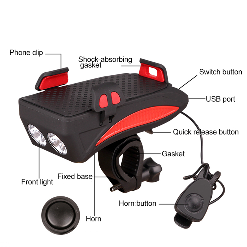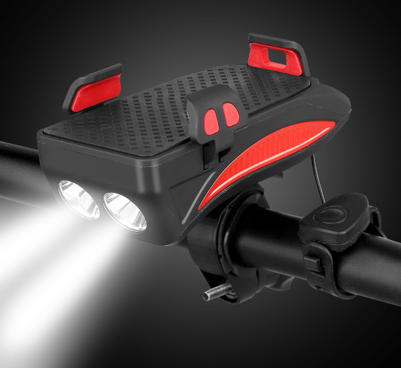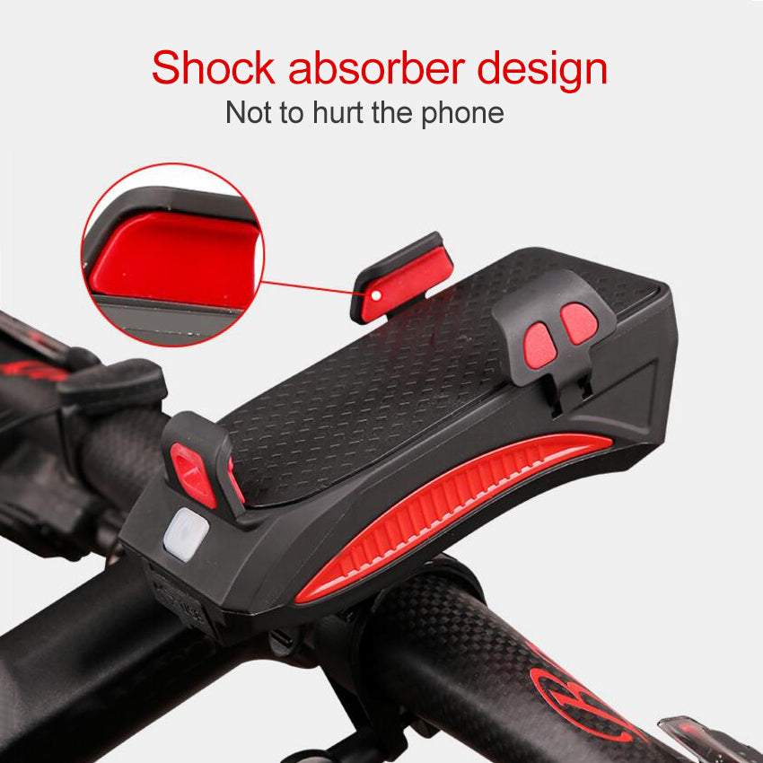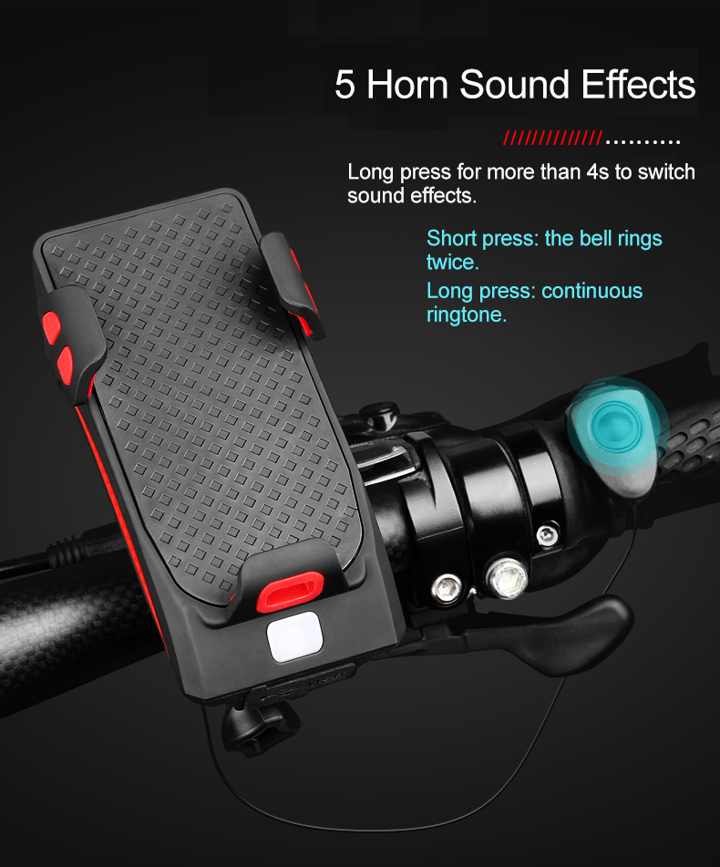 - 3 functions: mobile phone holder + bright front light + 130dB horn.